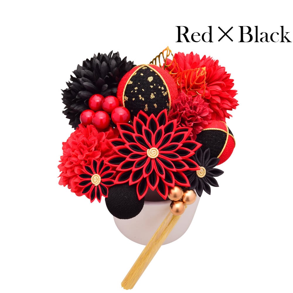 成人式 髪飾り 花かんざし ちりめん 結婚式 ピンポンマム Uピン つまみ細工 卒業式 15点 黒 赤